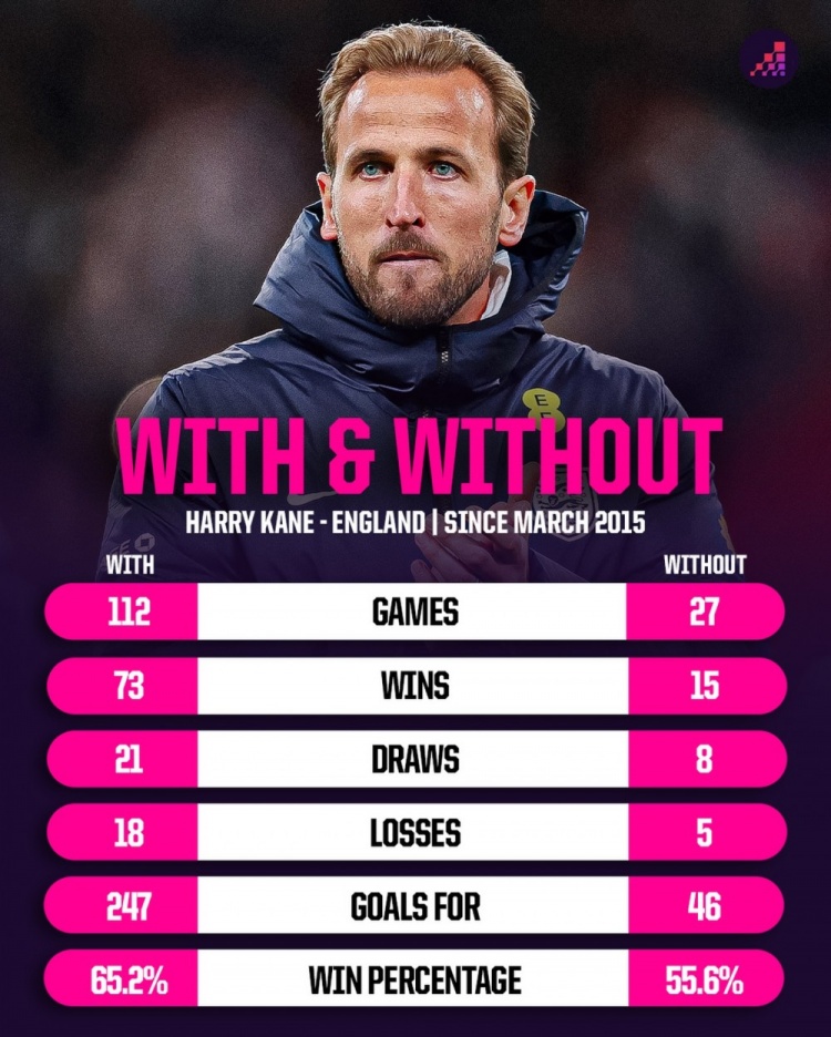 开云官方app-关键球员!凯恩在场英格兰胜率65.2%,缺席胜率降至55.6%
